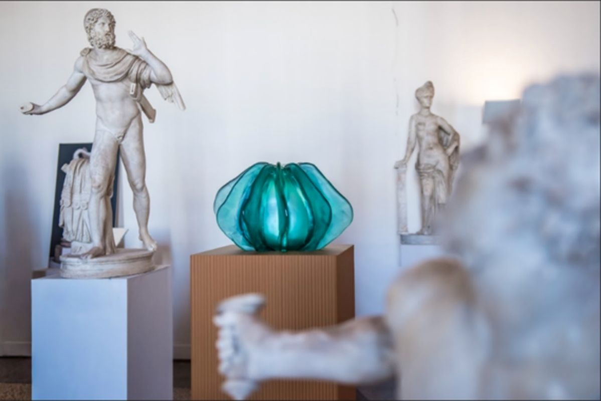 Through experimentation and inclusions in glass, the Archeomateria series, stratifies memory within matter, generating a dialogue between time, light, and the forms of classical statuary.